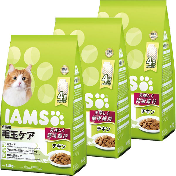 アイムス キャットフード 成猫用 毛玉ケア チキン 1.5kg(375g×小分け4袋)3袋 マース