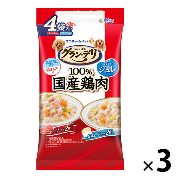 | 商品の特徴 | ・100%国産の良質な鶏肉を調理・美味しい鶏ささみ入りレトルトパウチ・ドライタイプやソフトタイプのフードと混ぜやすいジュレタイプ・ビーフ入りと軟骨入りがそれぞれ2袋ずつ入った、嬉しいアソート4袋パック #犬 #イヌ #いぬ #ドックフード #ウェット #犬用 #犬の餌 #犬えさ #犬餌 #グランデリ #パウチ #ペットフード #どっぐふーど #ユニチャーム #ペット | ||