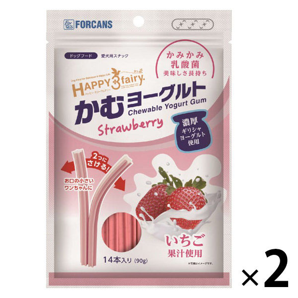 ハッピー・スリーフェアリー 歯磨きガム かむヨーグルト イチゴ 14本 2袋 ドッグフード おやつ デンタルケア