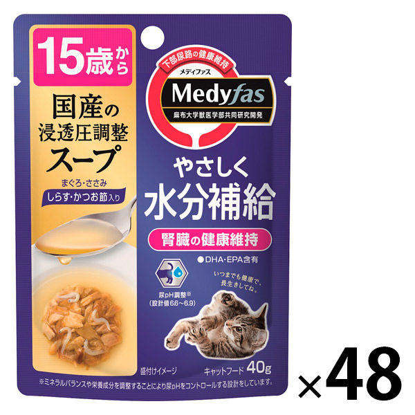 | 商品の特徴 | 尿pHをコントロールし、下部尿路の健康維持をサポート。猫の体液に合わせて浸透圧を調整し、やさしく水分補給。しらす・かつお節を贅沢にトッピング。尿pH設計値6.6~6.9 | ||