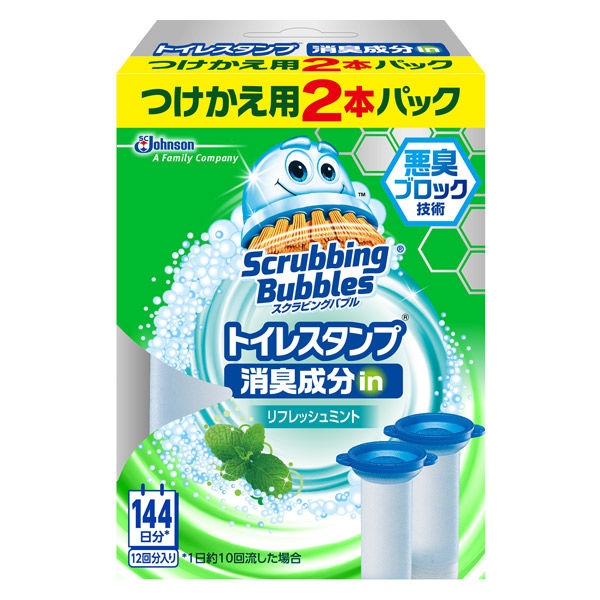 スクラビングバブル トイレ掃除 トイレスタンプ 消臭成分in リフレッシュミントの香り 付け替え用 (12回分:2本入) トイレ洗剤 ジョンソン