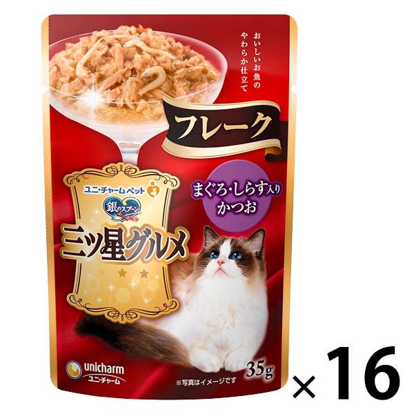 銀のスプーン 三ツ星グルメ フレーク まぐろ・しらす入りかつお 35g 16袋 キャットフード ウェット パウチ