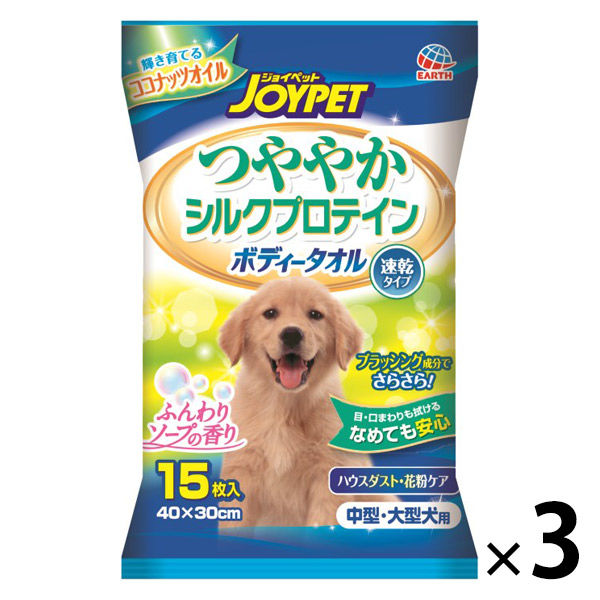 つややかシルクプロテイン ボディタオル 中型・大型犬用 ハウスダスト 花粉ケア 国産 15枚入 3袋