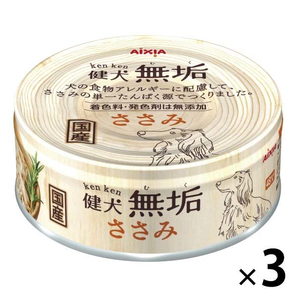 健犬無垢 ささみ 国産 65g 3缶 アイシア ドッグフード ウェット 缶詰