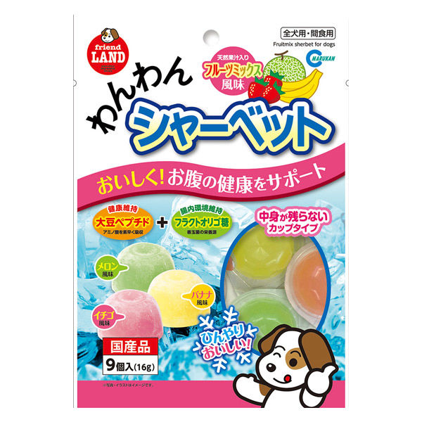 わんわん 犬用 シャーベット ゼリー 3つの風味! フルーツミックス風味 1個あたり約9kcal 水分補給 9個入 1袋 ドッグフード おやつ