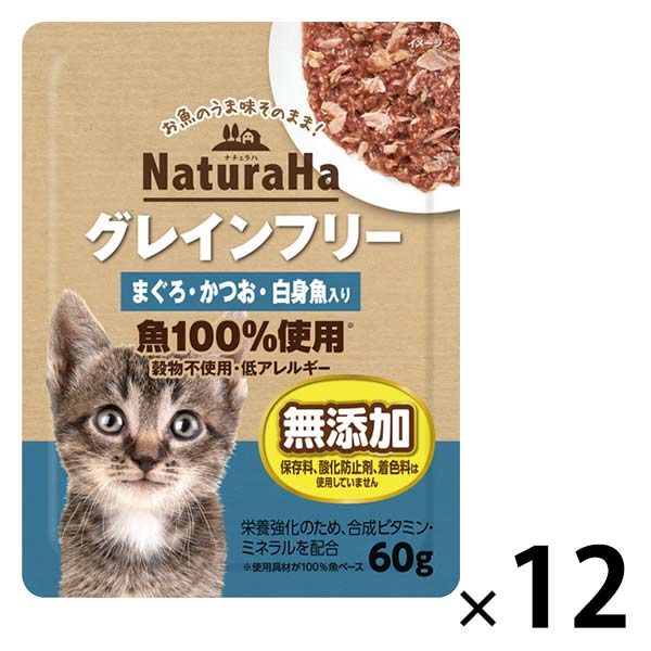 ナチュラハ グレインフリー まぐろ・かつお・白身魚入り 60g 12袋 サンライズ キャットフード ウェット パウチ