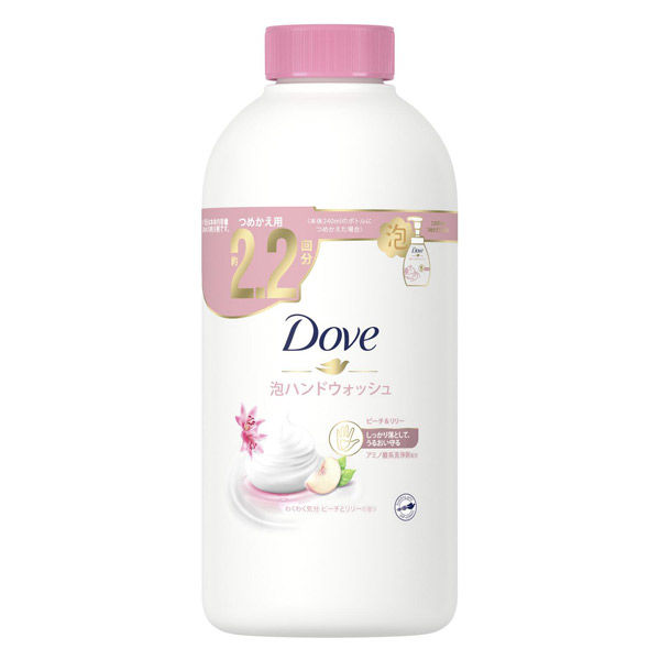 | 商品の特徴 | ●ダヴなら、手肌を洗浄、しっとり保湿。しっかり洗いたいけど、乾燥により手荒れに悩む方を考えて開発された、ダヴ独自の処方。●しっかりと汚れと雑菌を洗い流しながら、保湿成分が手肌にうるおいを補給。手肌を洗うたびにうるおうスキンケア。●スキンケア発想!アミノ酸系洗浄剤*1配合処方。スキンケアクオリティで手肌にうるおいを補給し、保湿。しっかり汚れと雑菌を落とす。●ワンプッシュで、うるおい成分をたっぷりと含んだ濃密な泡が出ます。●わくわく気分ピーチとリリーの香り(香料配合)。*1 ココイルグリシンNa | ||
