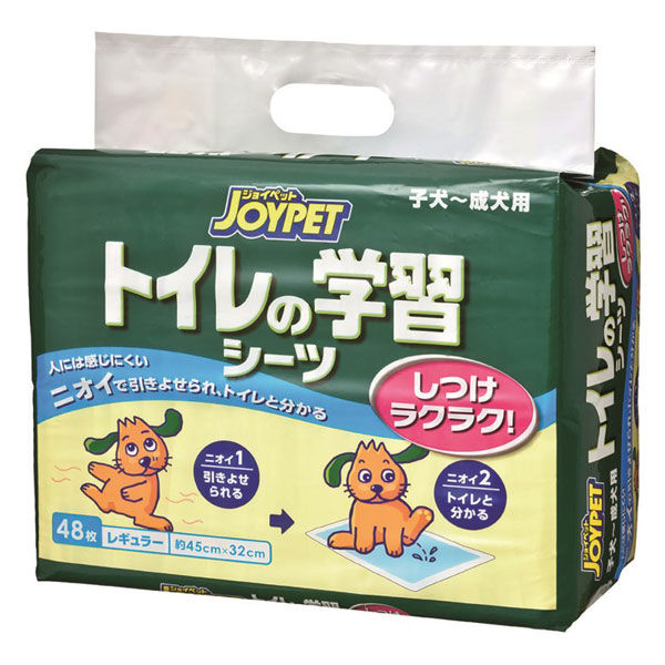 | 特徴 | トイレ用トレーニングシーツ。優れた吸収・消臭力。● 愛犬をシーツまで引き寄せ、そこが用を足す場所であることを認識させる「誘引・認識香料」を使用したJOYPET独自の2ステップのトレーニング。● 高機能の吸収材と高分子吸収性樹脂がオシッコをすばやくしっかり吸収。逆戻りさせない。● 高分子吸水性樹脂がオシッコのニオイを強力に閉じ込め消臭。 | 内容量 | 48枚 |