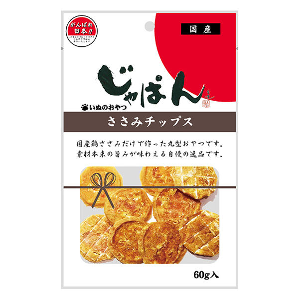 | 特徴 | 鶏ささみだけで作ったささみチップスです。国産鶏ささみ使用。 | 内容量 | 60g |