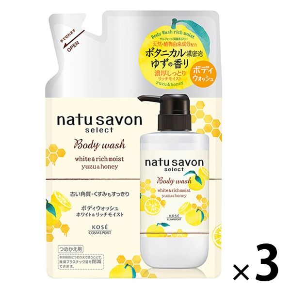 ソフティモ ナチュサボン セレクトホワイト ボディウォッシュ リッチモイスト ゆず&ハニー 詰め替え 360ml 3個 コーセーコスメポート