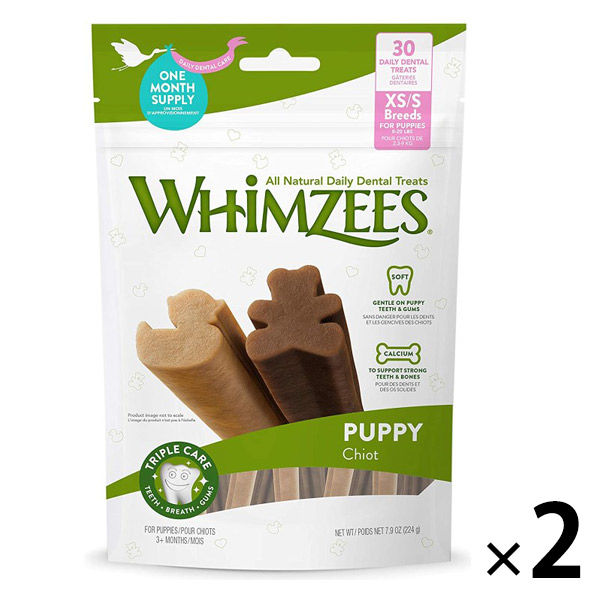 | 特徴 | ウィムズィーズで"遊びながらハミガキ習慣"をはじめよう!ウィムズィーズは植物由来の厳選素材を使用したデンタルトリーツです。長く噛むことにより、歯垢や歯石の減少、口臭予防に役立つだけでなく、ストレスケアにもなります。厳選した植物性の原材料のみを使用しています。人工着色料、香料、合成保存料不使用。オランダ産(原材料は全てヨーロッパ産)。子犬期の歯にやさしい適度な硬さ。食物繊維の量を少なくして成犬用と比べて柔らかくなっています。また、強い歯と骨をサポートするカルシウムを配合しています。アヒルとテディベアのかわいい形。 | 内容量 | 224g |