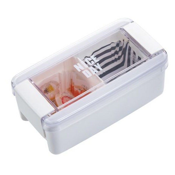 | 商品の特徴 | 食パンで作ったサンドイッチを四つに切ったものがピッタリ収まるサイズ設定。上から見て中身が確認できるクリアな窓付き。押しつぶしにくいフタ構造でふっくらと盛り付け、持ち運びができます。スリムでストレートなフォルム。電子レンジOK(本体・中仕切り)、食洗機OK、清潔仕様、銀イオンで抗菌(本体・中仕切り)、防汚加工(本体・中仕切り)。 | ||