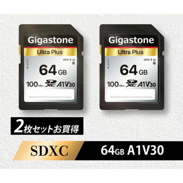GIGASTONE SDXCカード UHSー1 U3 A1 V30 64GB 2枚入り GJSXR-64GV3A1-2PK 1セット