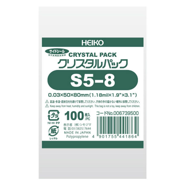 HEIKO OPP袋 クリスタルパック S 5ー8 1袋(100枚入)