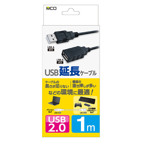 ナカバヤシ USB2.0 延長ケーブル USB A 1m ブラック USB-EA010BK 1個