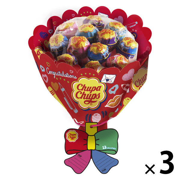 キャンディ ペロペロキャンディー 個包装 チュッパチャプス フラワーブーケ 12本入 1セット(1個×3) クラシエ