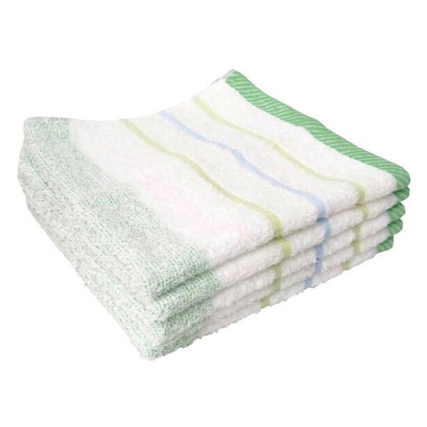 林 ウォッシュタオル 消臭加工ライブボーダー グリーン(緑) 1パック(5枚:同色×5枚)