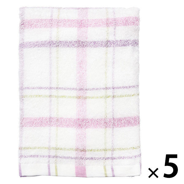 林 大判バスタオル リラックスチェック ピンク(桃) 1セット(5枚)