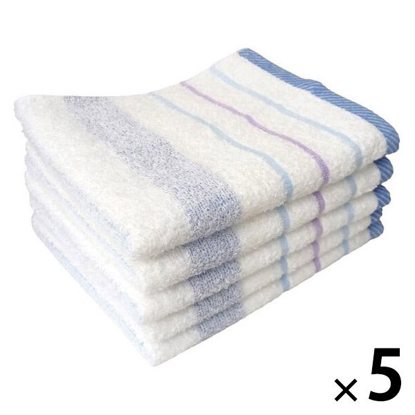 林 フェイスタオル 消臭加工ライブボーダー ブルー(青) 1セット25枚(同色5枚×5パック)