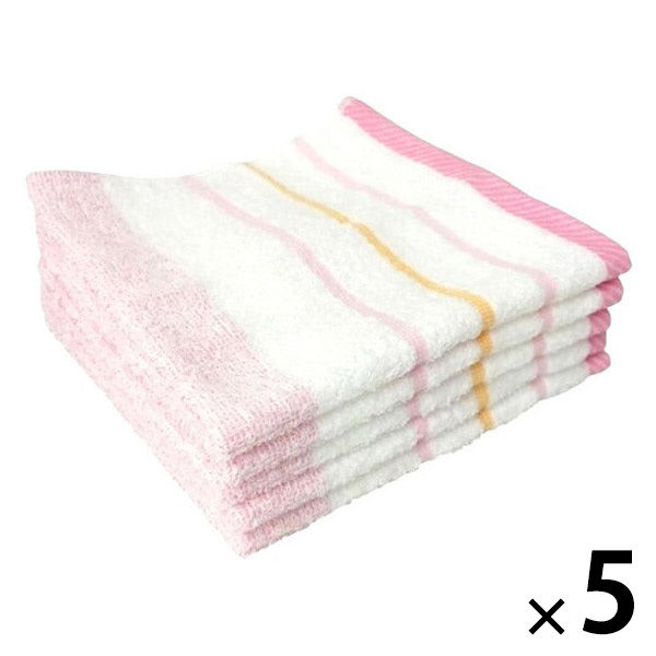 林 ウォッシュタオル 消臭加工ライブボーダー ピンク(桃) 1セット25枚(同色5枚×5パック)