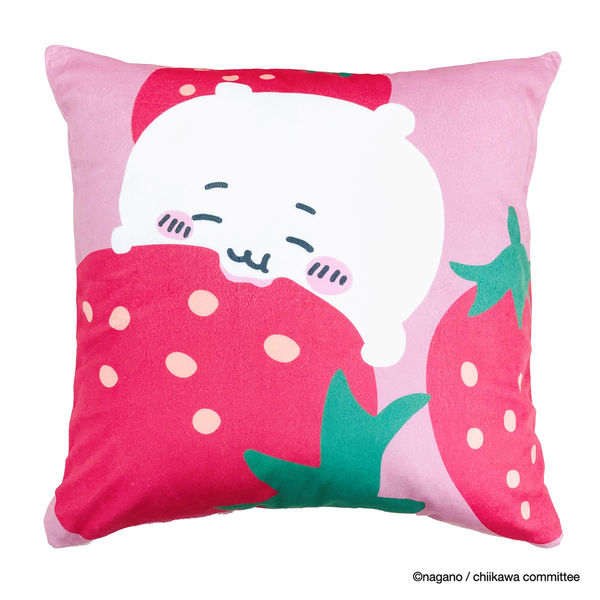 MORIPiLO ちいかわ クッションカバー (ちいかわ いちご ピンク) 45x45cm グッズ 可愛い 柔らかめ 背もたれクッション カバー おしゃれ
