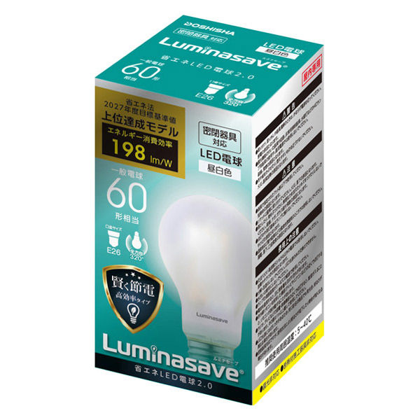 【超省エネLED電球】 ルミナセーブ電球 60形相当 E26 昼白色 4.4W 消費効率198Lm/W 密閉器具対応 1時間あたりの電気代約0.14円 ※1