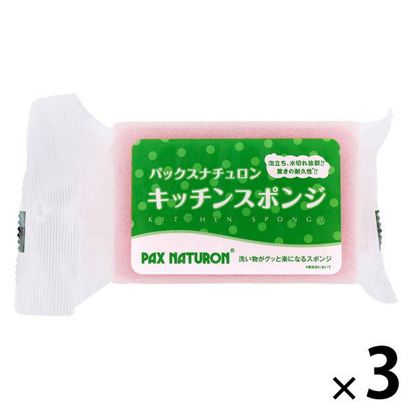 パックスナチュロン キッチンスポンジ 水切れがよい 長持ち 食器洗い ピンク 1セット(1個×3)太陽油脂