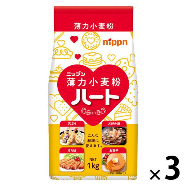 | 商品の特徴 | 厳選した原料小麦と優れた技術で作った、高品質で幅広い用途に使いやすいニップンの「ハート」。おいしい料理は良い粉で。1kgの薄力小麦粉です。 | ||