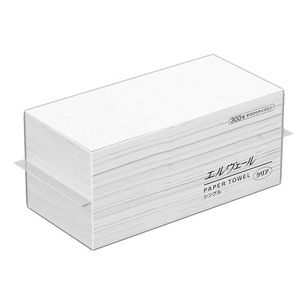 ペーパータオル 手のひらサイズミニ リサイクルパルプ シングル 300枚 エルヴェール ペーパータオル クリア 1個 エリエール