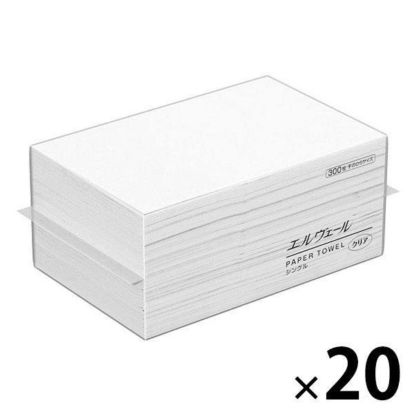 ペーパータオル 手のひらサイズ リサイクルパルプ シングル 300枚 エルヴェール ペーパータオル クリア 1セット(1個×20)