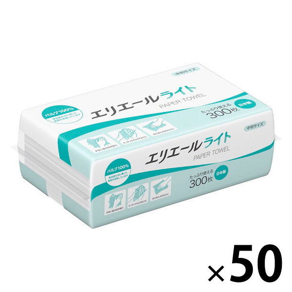 ペーパータオル 中判 パルプ シングル 300枚 エリエール ペーパータオル ライト 1セット(1個×50)エリエール