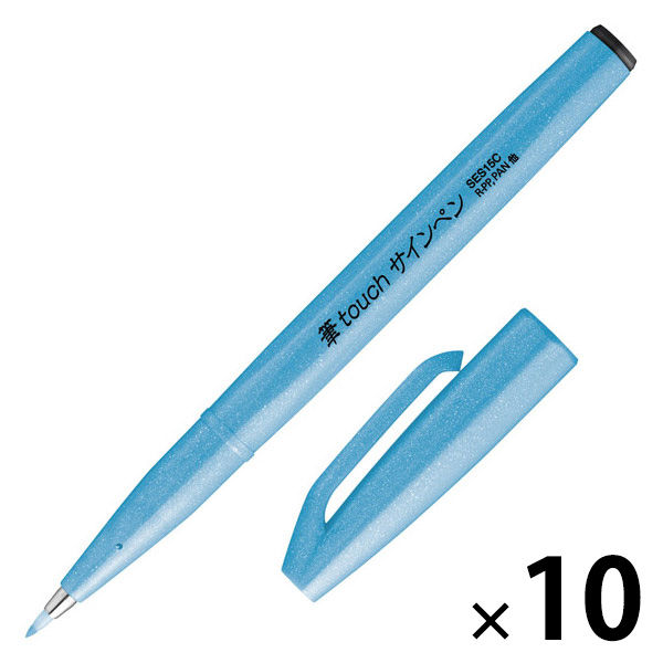 ぺんてる カラー筆ペン 筆タッチサインペン Neon Color 蛍光ブルー SES15C-FS 1セット(1本×10)