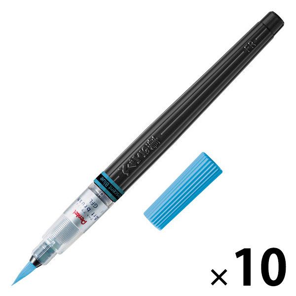 ぺんてる カラー筆ペン アートブラッシュ Neon Color 蛍光ブルー XGFLP-306 1セット(1本×10)