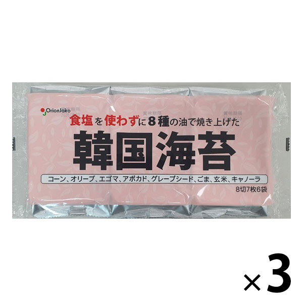食塩を使わずに8種の油で焼き上げた韓国海苔 8切7枚 6袋入 1セット(1個×3)オリオンジャコー