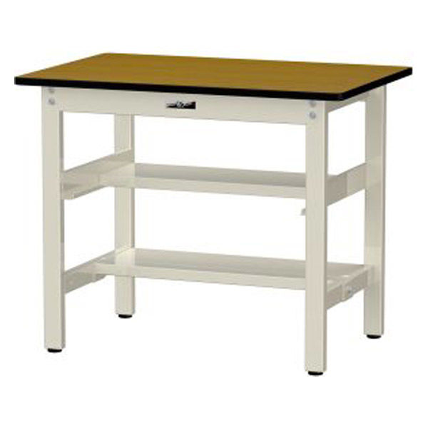 | 商品の特徴 | ●軽量作業・中量作業に適した汎用作業台です。●中間半面棚板付き、足元にも半面棚板付きで収納に便利です。●中間棚は25mmピッチで高さ変更が可能です。(足元の棚板は高さ変更不可)●天板表面材のメラミン化粧板は、表面硬度が高く耐摩耗性に優れています。傷がつきにくいため、梱包、検品、組立等の作業テーブルに最適。●天板角には丸み(R20)を付けた安全設計。●樹脂製アジャスターを標準装備!簡単に床レベルが調整でき、作業台を水平に保ちます。●オフィス、工場、学校、研究施設、倉庫、物流センター、店舗等に。 | ||