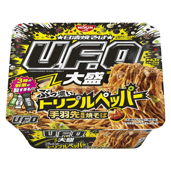 | 商品の特徴 | 別添「トリプルペッパー」の3種の刺激がクセになる、濃厚”手羽先”風味焼そば! | ||