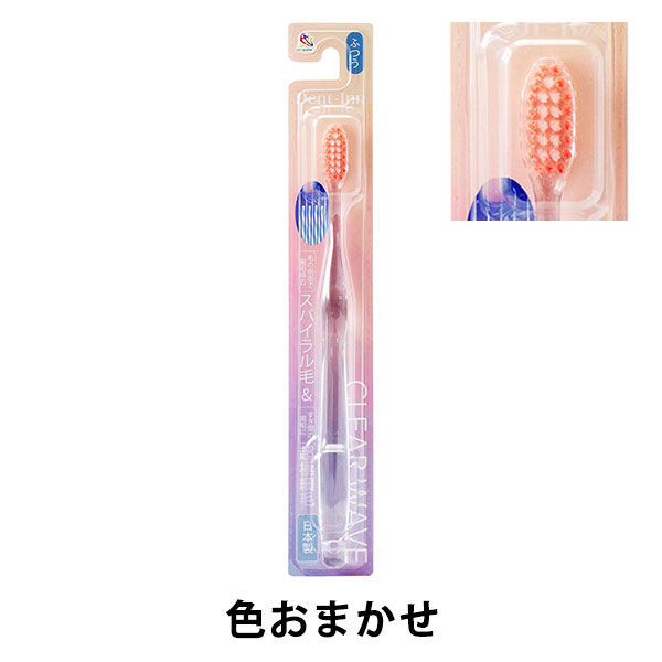 | 商品の特徴 | 清潔感漂う無色透明ハンドル。シンプルなデザインにカラフルなスパイラル毛を使用し、見た目も機能性にも優れたハブラシです。 | ||
