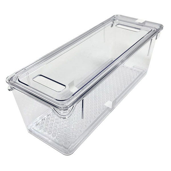 | 商品の特徴 | 洗ったままの野菜を入れても水切りできる、すのこ付きの保存容器。クリアな容器で中身が見えて食材を探しやすいです。フタ付きで重ねて置けるので冷蔵庫内がスッキリします。引き手が付いているので、簡単に容器を取り出すことが出来ます。BPAフリーで安心安全。カットした野菜の保存や下ごしらえ用の野菜の一時おきに便利です。 | ||