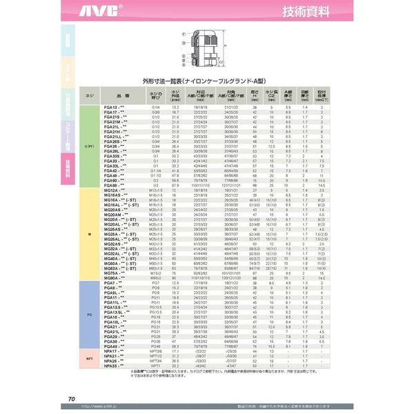 | グランド本体最小内径(φ) | 25 | スパナサイズ(A部/F部) | 46/42 |