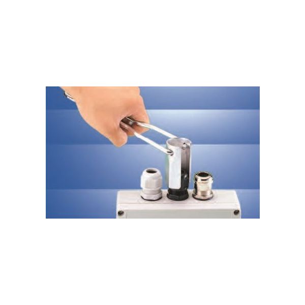 | 商品の特徴 | ●多数のスーパーグランドがお互いに隣接して取り付けられている場合でも簡単に締め付けることができます。●引出ケーブルも邪魔にならず、奥まった箇所での手締めが難しい場合でも、長目のハンドルとその角度が自在なので楽に作業が出来ます。●AVCスーパーグランドは本来工具なしで手締めでクランプ力を発揮しますが、手締めが不可能な箇所や特に強く締め付けることが必要とされる場合にご利用下さい。●レンチ品番の末尾数字とスーパーグランド各品番のスパナサイズを照合の上、使用レンチを選定して下さい。●材質スチールダイカスト | ||