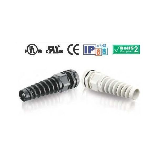 | 商品の特徴 | ●A型はシール(D)を抑えるツメ(E)が本体(C)と分離しています。ラインナップが豊富でより最適な品番選定が可能です。●軽い締め付けで抜群のクランプ力を発揮し、完璧なシール性能によりボックス内部の精密部品を保護します。●スパイラル部の保護により、光ファイバーケーブルを鋭い曲げによる断線から守り、ケーブルの寿命を延ばします。●産業ロボット等の激しい動きをする箇所で、スパイラル部がケーブルを保護し、鋭い曲げによる断線から防御します。●使用温度範囲:-40℃~105℃(瞬時/1分:160℃) | ||