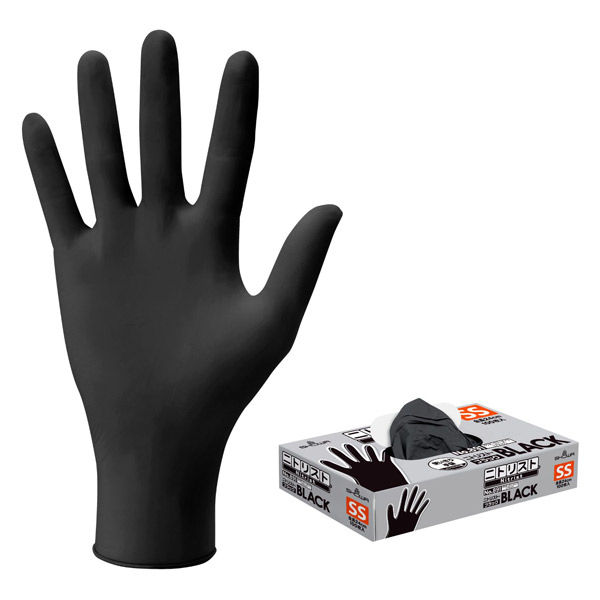 【使いきりニトリル手袋】ショーワグローブ No.891ニトリストブラック100枚 SS 891ーSS 1箱(100枚入)