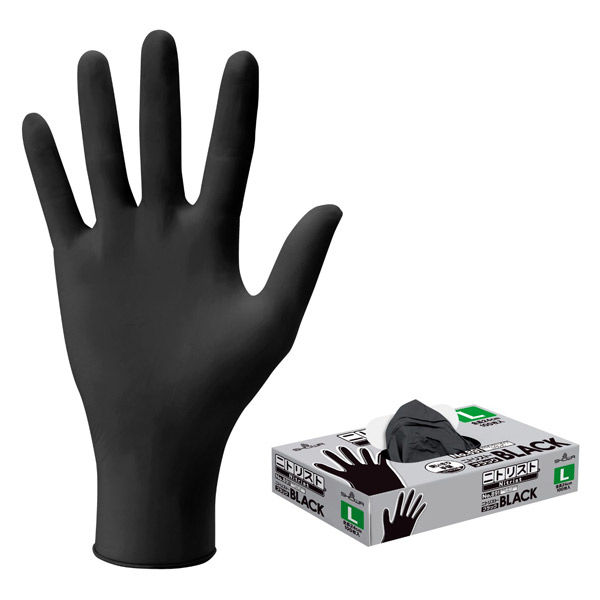 ニトリルゴム使い捨て手袋。人気のブラックタイプ(黒色)。食品衛生法適合の為、飲食店などの直接触れる作業でもお使いいただけます。ニトリストシリーズ。