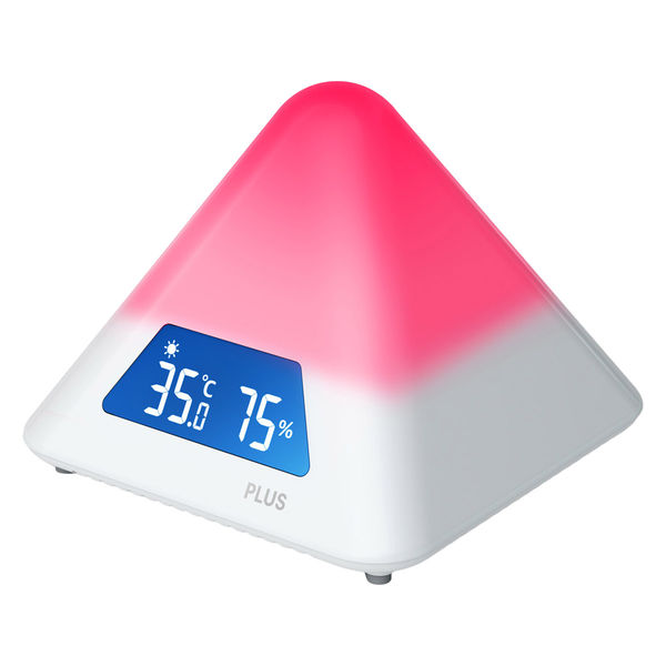 室内の熱中症危険度を知らせる「プラス温湿度LEDアラーム」。暑さ指数、乾燥レベルを色で360度見える化!夏場の熱中症対策、冬場の乾燥対策に、一年中ご利用可能