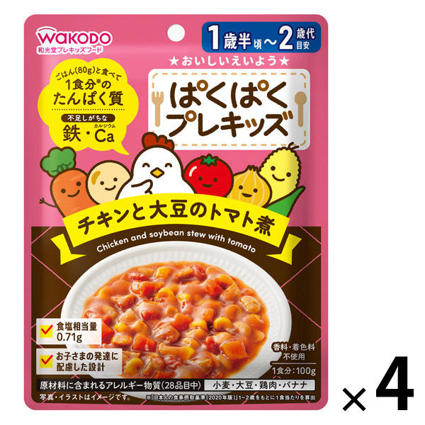 (1才後半頃から2才頃) WAKODO 和光堂 ぱくぱくプレキッズ チキンと大豆のトマト煮 1セット(1袋×4)