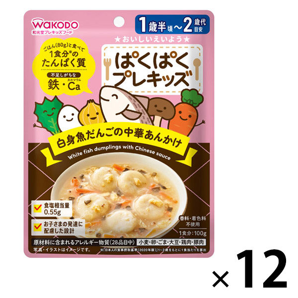 (1才後半頃から2才頃) WAKODO 和光堂 ぱくぱくプレキッズ 白身魚だんごの中華あんかけ 1セット(1袋×12)