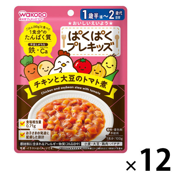 (1才後半頃から2才頃) WAKODO 和光堂 ぱくぱくプレキッズ チキンと大豆のトマト煮 1セット(1袋×12)