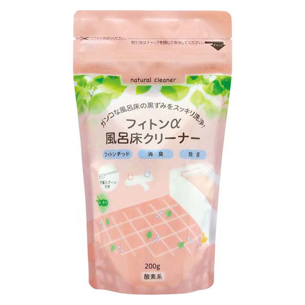 | 商品の特徴 | ガンコな風呂床の黒ずみをスッキリ洗浄。計量スプーン付き。フィトンα、ヒバ油配合で、浴室内にこもった臭いもしっかり消臭。フィトンチッド効果で除菌もできます。洗浄成分には石けん成分と酸素系洗浄剤を使用しており、人にも環境にも優しい成分になっています。風呂床の溝もスッキリきれいに洗い上げます。 | ||
