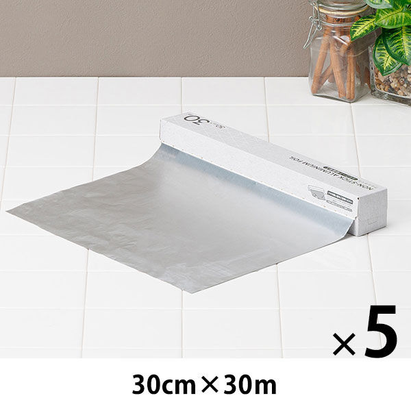 (限定)アルミホイル 長尺 食材がくっつきにくいシリコンホイル 30cm×30m 1セット(1本×5)オリジナル オリジナル