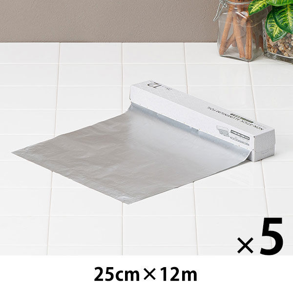 (限定)アルミホイル 食材がくっつきにくいシリコンホイル 25cm×12m 1セット(1本×5)オリジナル オリジナル